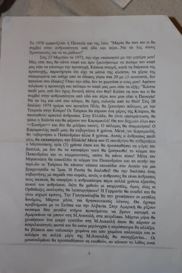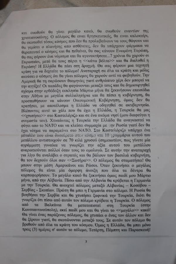 Σας τα μεταφέρω, όπως μου τα έδωσε χθες αυτός που τα κατέγραψε, προκειμένου να ενημερωθούν οι άνθρωποι (κι όχι να φοβηθούν). Ο Άγιος Θεός μεθ’ ημών. Πίστη, Προσευχή και Υπομονή