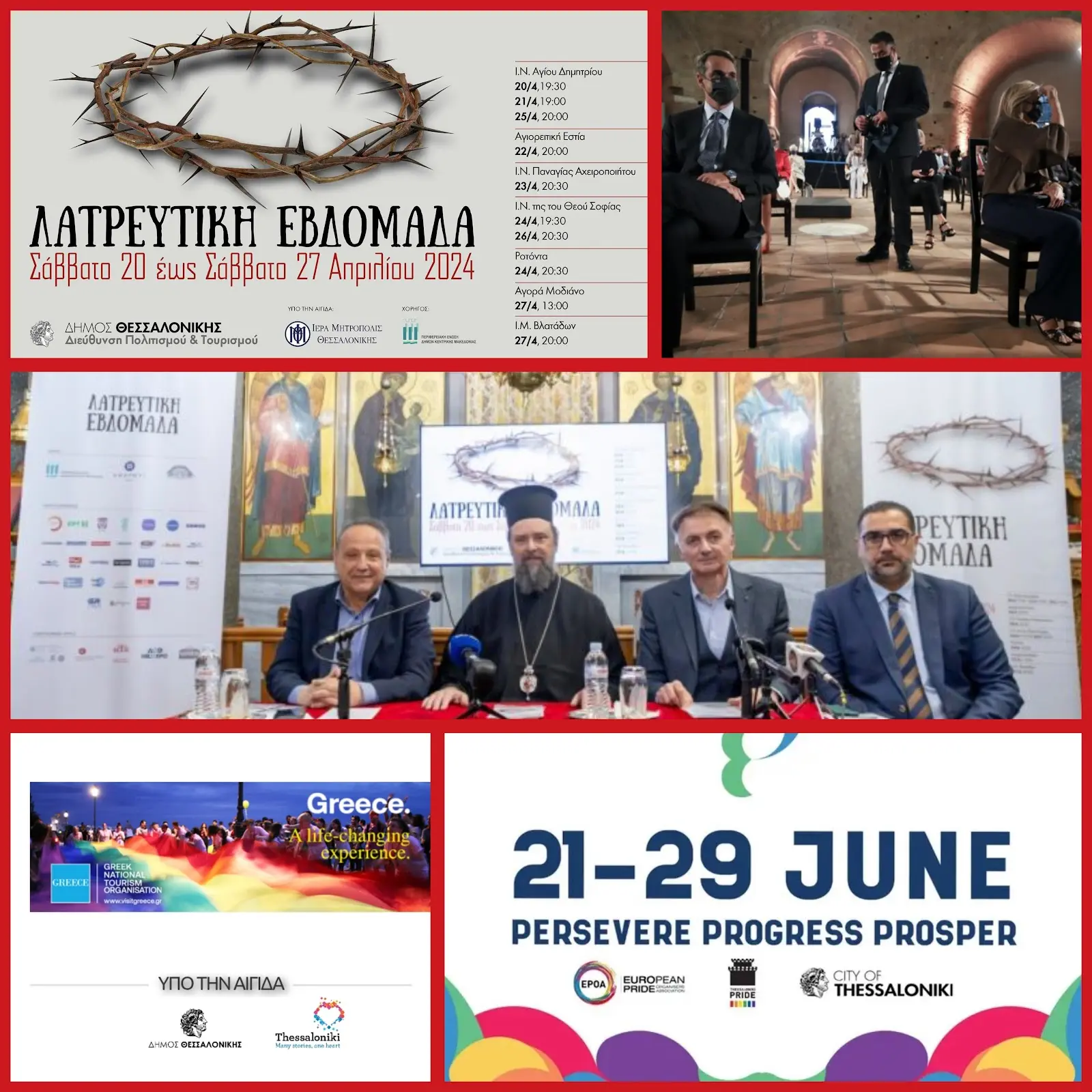 Σχόλιο: Στην 3η φωτογραφία ο πρωθυπουργός μας, σταυροπόδι, σε εκδήλωση μέσα στον Ιερό Ναό Αγίου Γεωργίου - Αρχαγγέλων (Ροτόντα).