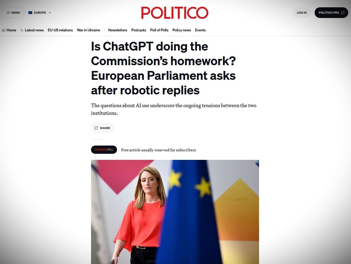 Η ΕΕ όχι μόνο έχει υποβαθμισμένο το Ευρωκοινοβούλιο (το μόνο όργανό της με άμεση δημοκρατική νομιμοποίηση) ώστε να μην μετέχει ουσιαστικά και επιδραστικά στη διαμόρφωση της ευρωπαϊκής πολιτικής αλλά προσφάτως διαπιστώθηκε ότι το απαξιώνει έτι περαιτέρω απαντώντας του με εργαλεία τεχνητής νοημοσύνης.