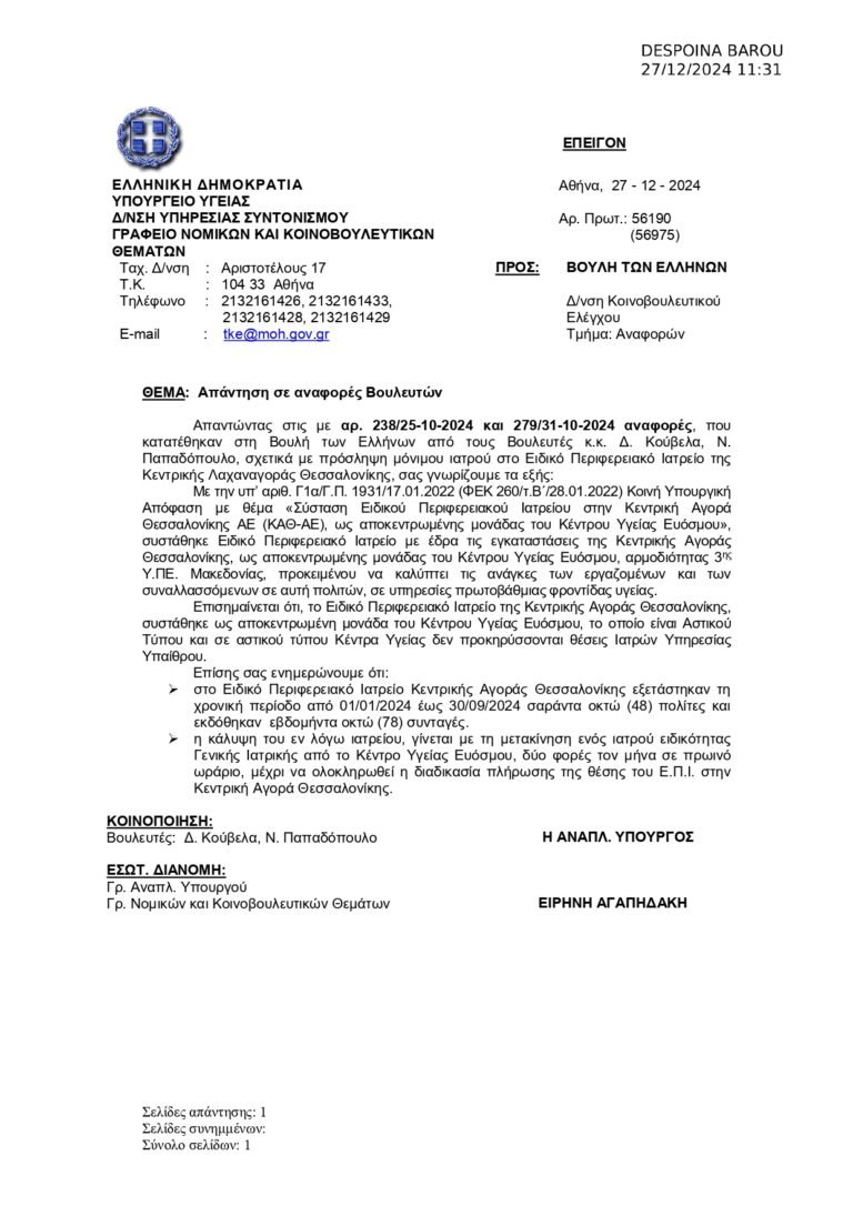 Η Αναφορά μου με αρ. πρωτ. 279/31-10-24 εδώ: