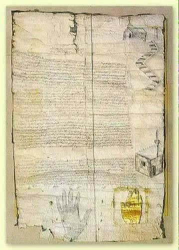 Την άνοιξη του έτους 632 μχ ο «προφήτης Μωάμεθ» , καταλαμβάνει το Σινά και παραδίδει τον ιερό αχτιναμέ στον ηγούμενο της μονής , αναγνωρίζοντας πλήρη κυριότητα , στην εντός του τείχους κειμένη μονή , στο Βασιλικό έθνος των Ρωμαίων και απαγορεύοντας εσαεί την - έργω και λόγω - προσβολή του χώρου από Μουσουλμάνους .