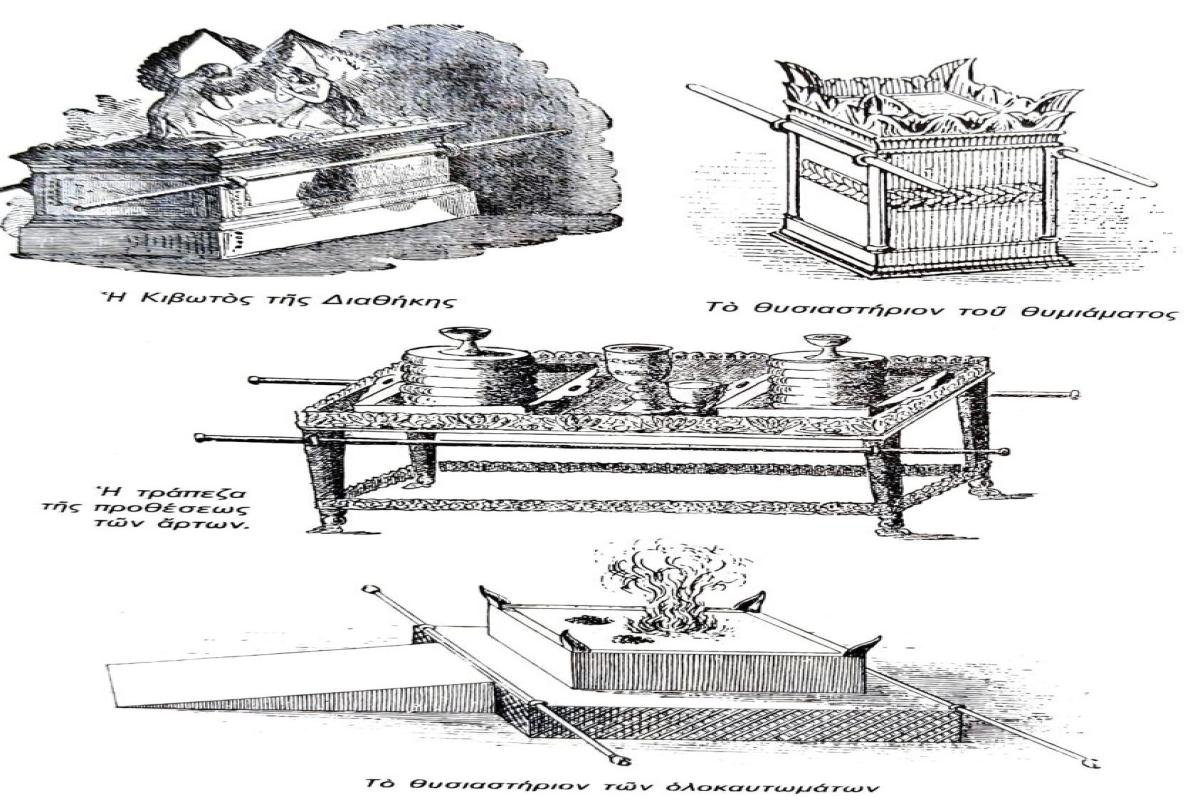 Μ΄ εντολή του Κυρίου ο Μωυσής ενέτειλε τον Βεσελεήλ , τον Ώρ και τον Ελιάβ οίτινες κατεσκεύασαν φορητό Ναό – την Σκηνή του Μαρτυρίου – και πάντα τα εν αυτή , την τράπεζα , την λυχνία , το Λογείο – Εφουδ και κυρίως το ξύλινο επιχρυσωμένο κυτίο – την Κιβωτό - εντος της οποίας ετοποθέτησε τις πλάκες της Διαθήκης Εξ , κεφ Λστ-Λζ .