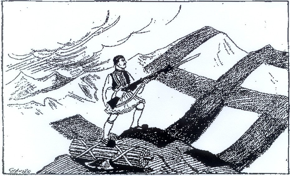 Το ότι εις την χώρα ταύτην , υπάρχουσι επιγραφώμενα μνημεία , υπέρ των Μαραθωνομάχων – Σαλαμινομάχων – των εν Θερμοπύλες και αλλαχου Ελλήνων οπλιτών πεσόντων , εσχάτως δε των μακεδονομάχων – Ιταλομάχων Ελλήνων πεσόντων , κατ΄ αριθμό και όνομα , ουδόλως προβληματίζει τους κατοίκους της σοφώτατης πόλεως των Αθηνών , οίτινες πιστεύουσιν , ότι αοράτως , εξ ύψους και εξ αγνώστων ηλευθερώθησαν , απονέμοντας καθ΄ εκάστη μετά στρατιωτικού αγήματος , τιμάς και θυσίας προς τους ανυπάρκτους πεσόντας .
